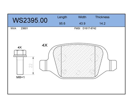 Колодки тормозные задние 11196, 2190, 2180 Vesta Cross JEENICE