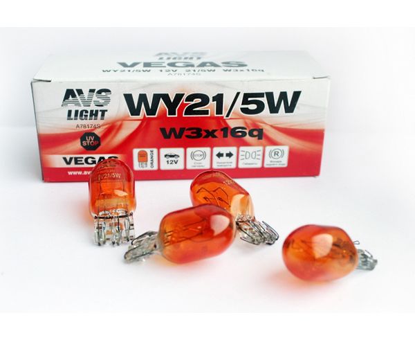 Лампа WY21/5W 12V 21/5W AVS W3x16q желтая