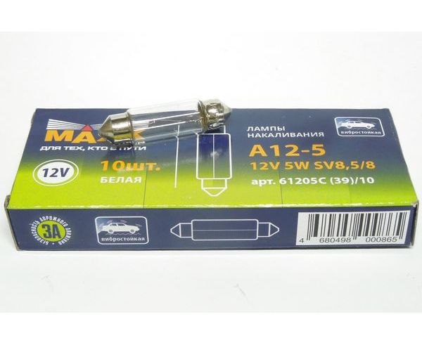 Лампа C5W 12V 5W 38мм МАЯК