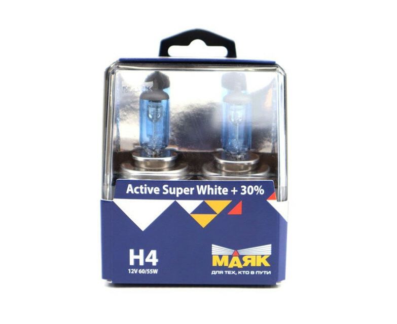 Лампа H4 12V 60/55W МАЯК Active Super White +30%(2 шт)