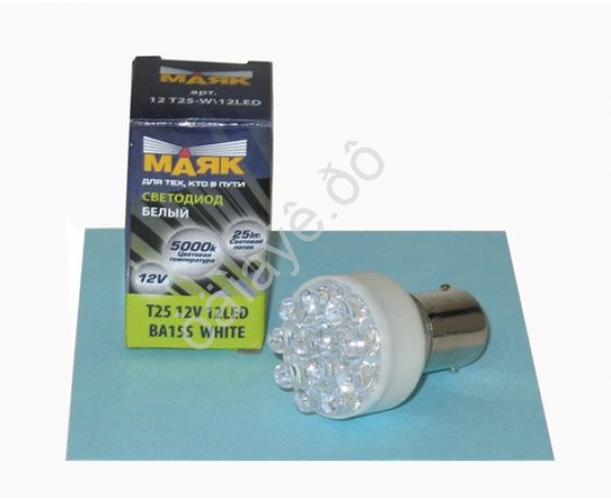 Лампа P21W LED 12V 12SMD МАЯК White 5000K BA15s