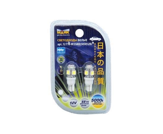Лампа T10 W5W 12V 5SMD 5000K МАЯК (2шт)