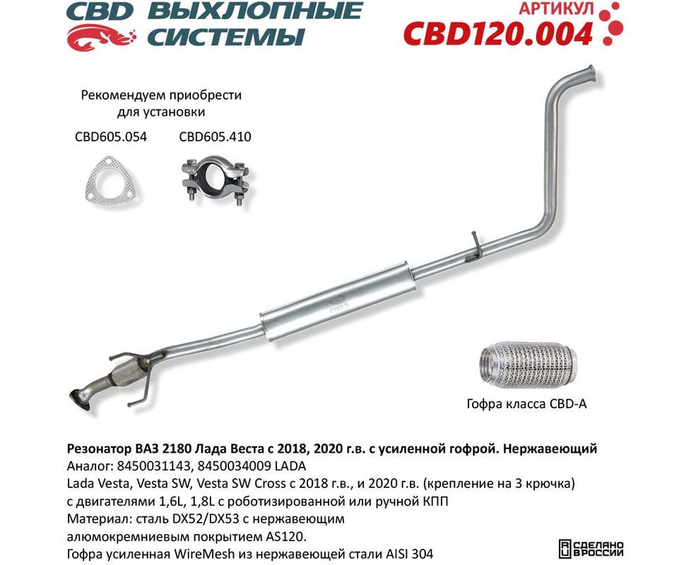 Резонатор 2170 с гофрой CBD нерж.