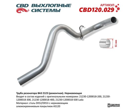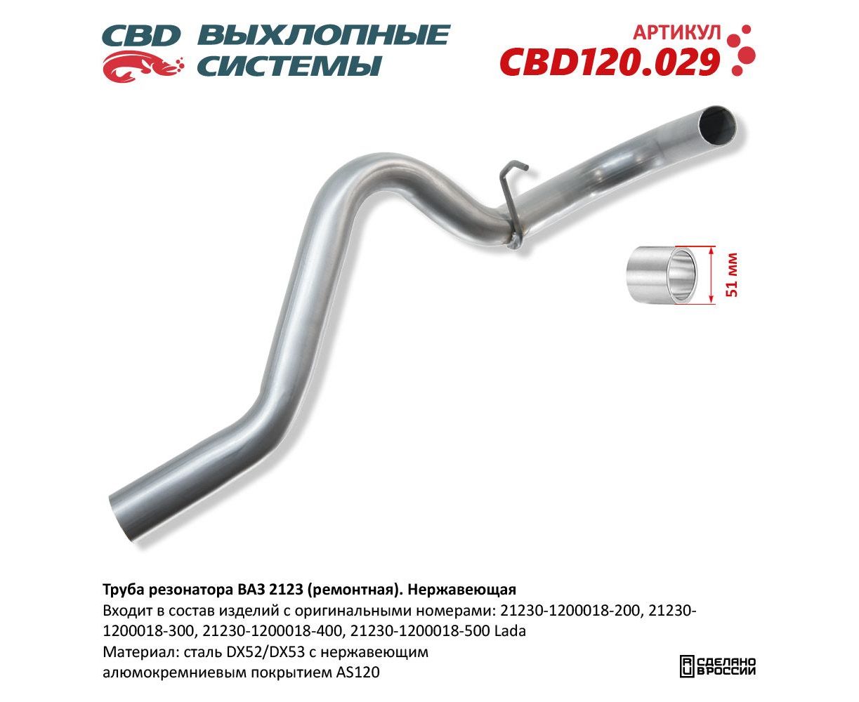Труба резонатора 2123 ремонтная CBD нерж